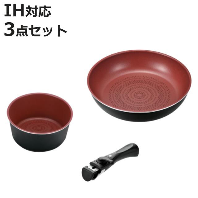 フライパン 3点セット B IH対応 クックサイン 取っ手付き クックウェア3点セットB 取っ手が取れる ( フライパン24cm 鍋16cm ガス火対応 アルミ 取っ手が取れる フライパン ih対応 フライパンセット)