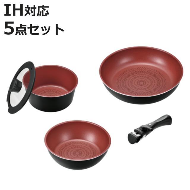 フライパン 5点セット B IH対応 クックサイン 取っ手付き ガラス蓋付き クックウェア3点セットB 取っ手が取れる ( 炒め鍋20cm フライパン26cm 鍋18cm アルミ フライパン ih対応 26cm フライパンセット フライパン 20cm)