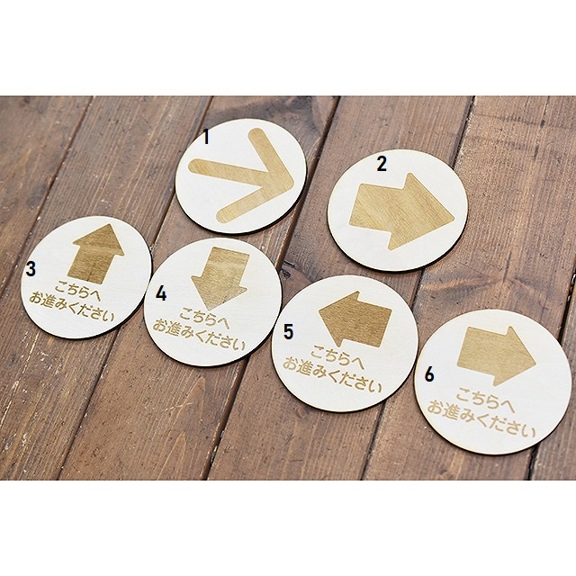 木製サインプレート◆案内 矢印◆メッセージプレート◆ドアプレート 丸形◆レーザー加工◆ハンドメイド◆各種◆