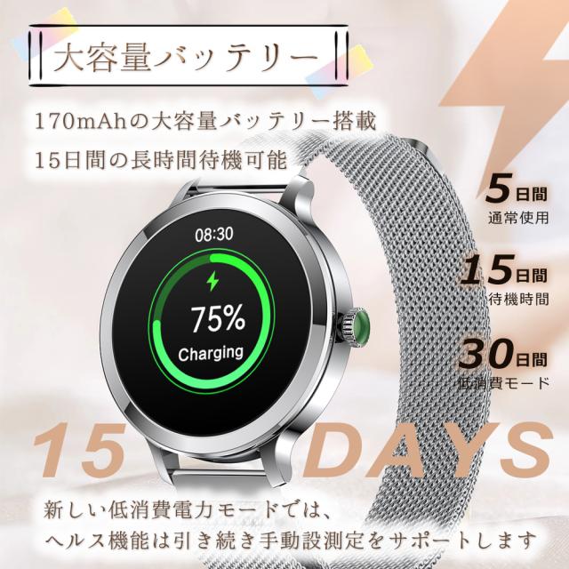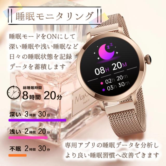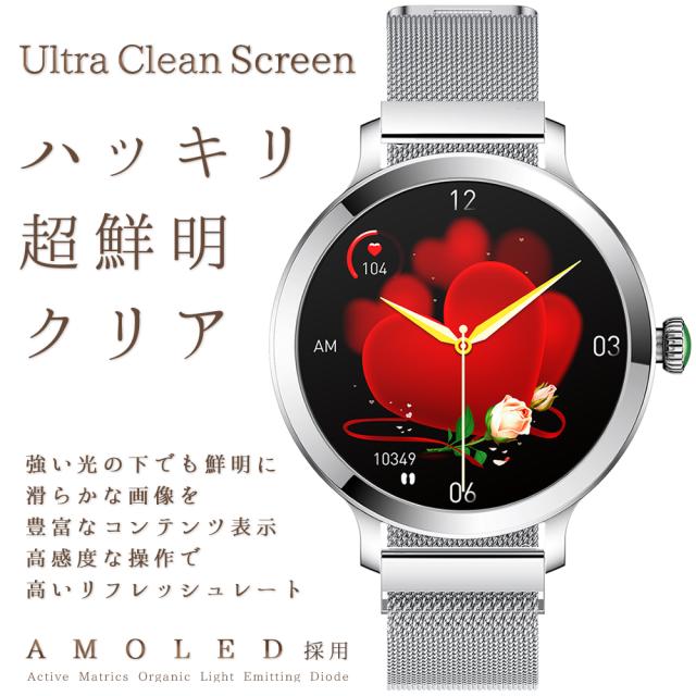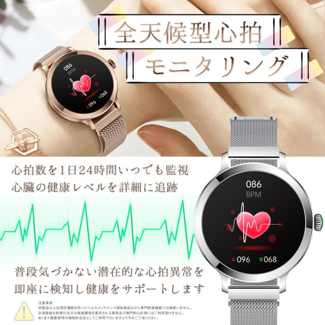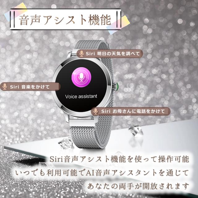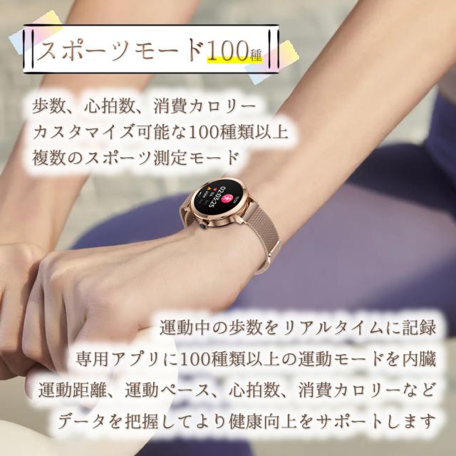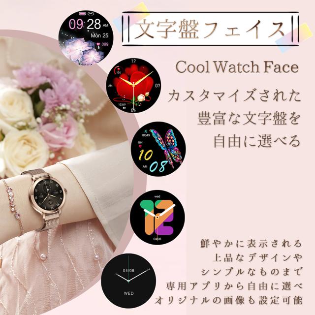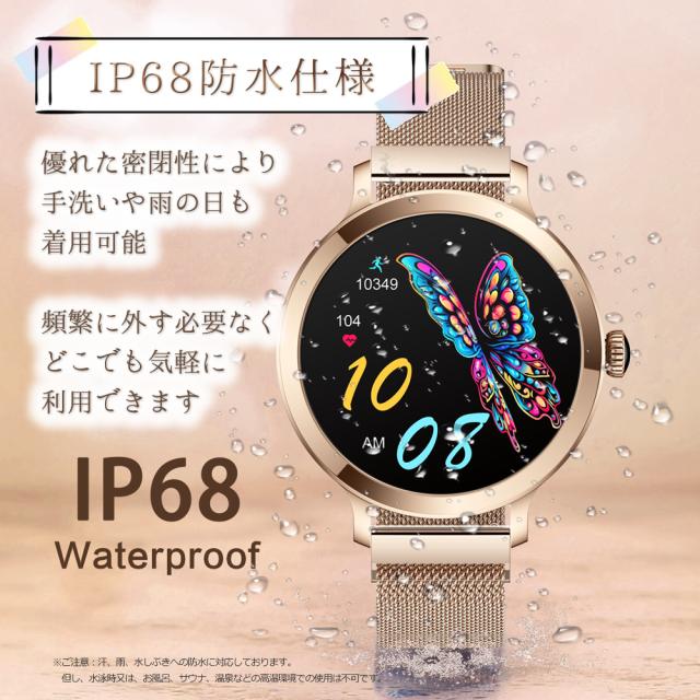 通話機能 スマートウォッチ レディース 最新版 防水 女性 フルタッチスクリーン カロリー Line着信電話通知 iphone&Android対応 日本語取扱説明書 レディース/彼女/母の贈り物