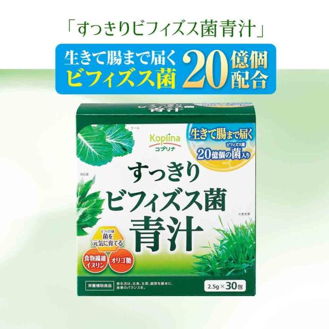 すっきりビフィズス菌青汁 2.5g×30包 1個30日分【粉末 ビフィズス菌20億個 大麦若葉 ケール 明日葉 オリゴ糖 食物繊維 善玉菌 イヌリン 健康食品 安心国内製造 コプリナ】