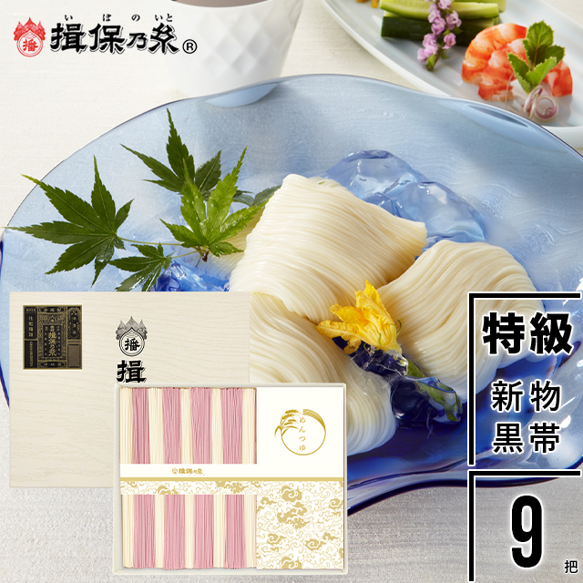 手延そうめん『揖保乃糸』新物 特級品(黒帯) 紅白麺 つゆ入 50g×9把[KST-25N]