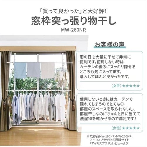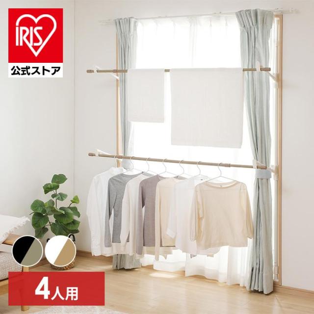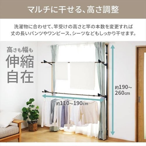 洗濯物干し 室内 突っ張り 窓枠物干し 木目調 高さ190-260cm 伸縮自在 省スペース 大容量 簡単設置 突っ張り物干し つっぱり 物干し 室内物干し 部屋干し 梅雨 除湿機 サーキュレーター 花粉 防犯 掃出し窓 白 黒 アイリスオーヤマ MW-W260N *