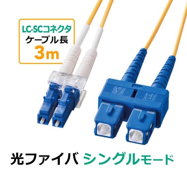 光ファイバーケーブル 3m LCコネクタ-SCコネクタ シングルモード コア径9.2マイクロメートル 2芯[500-HLS1-03]