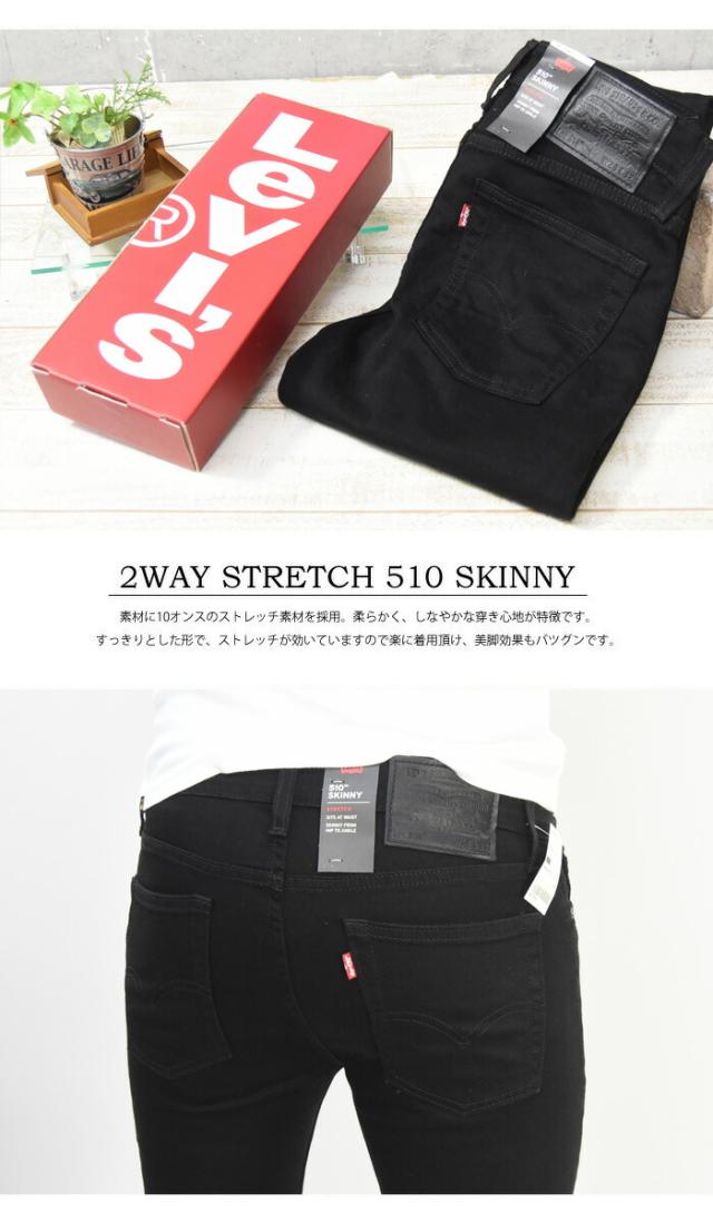 リーバイス 510 スーパースキニー ストレッチ素材 カラーパンツ ブラック メンズ 細め 細身 ブラックスキニー 黒スキニー 05510-0414