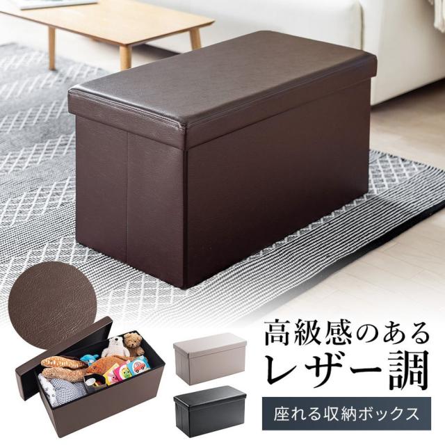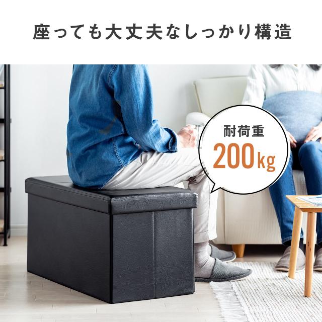 折りたたみ 収納スツール PUレザー生地 76×38cm ボックススツール[150-SNCBOX14]