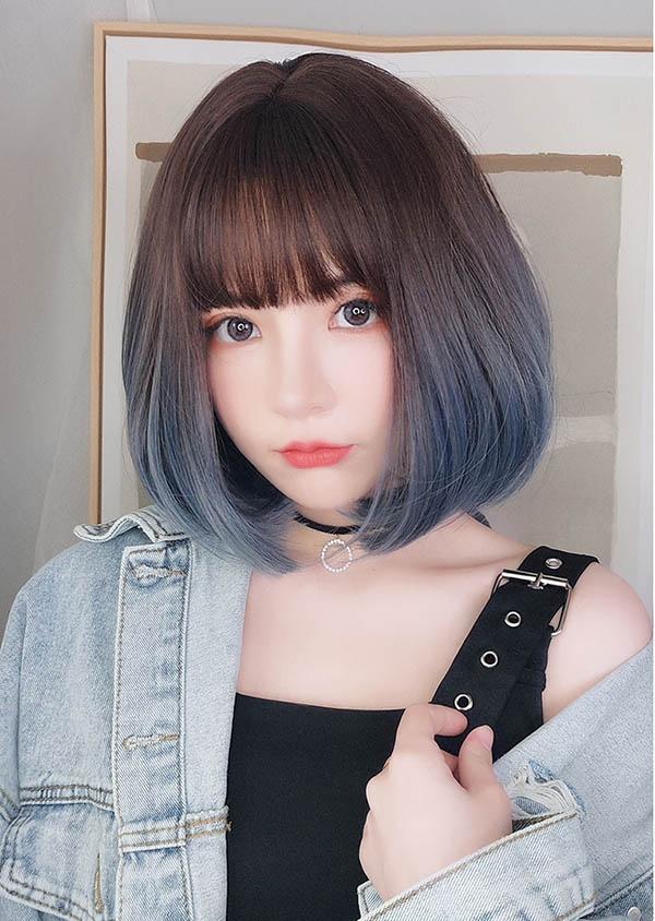 フルウィッグ かつら 超自然 普段使い スモーキーウィッグ セミロングウィッグ 小顔 レディース グラデーション lolita ボブ エクステ ファッション