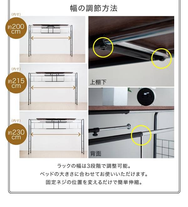 幅を3段階で調節できるので、今お使いのベッドにもプラスすることが可能です!