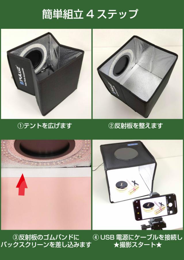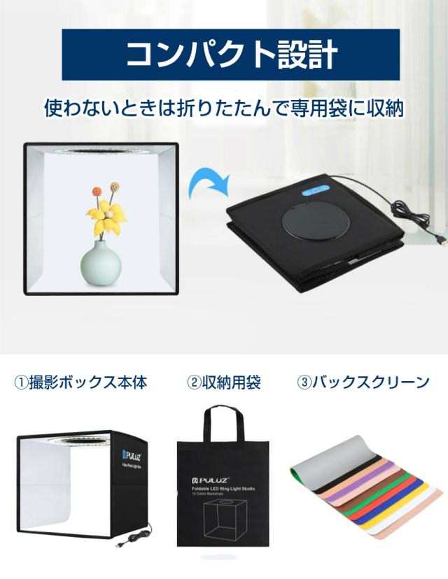 撮影ボックス 25cm 撮影ブース 撮影キット 簡易スタジオ LEDライト 折りたたみ 調光10段階 背景 LED照明 フォトスタジオ 撮影用 バックスクリーン付き 背景 セット 簡易撮影 コンパクト
