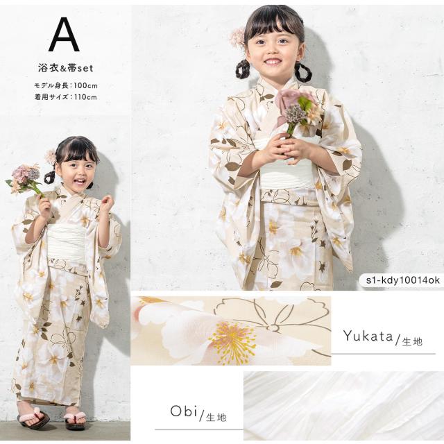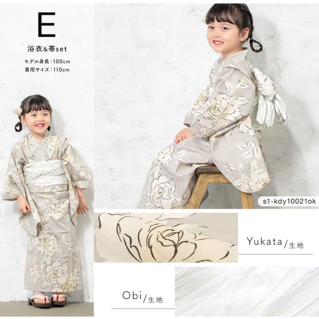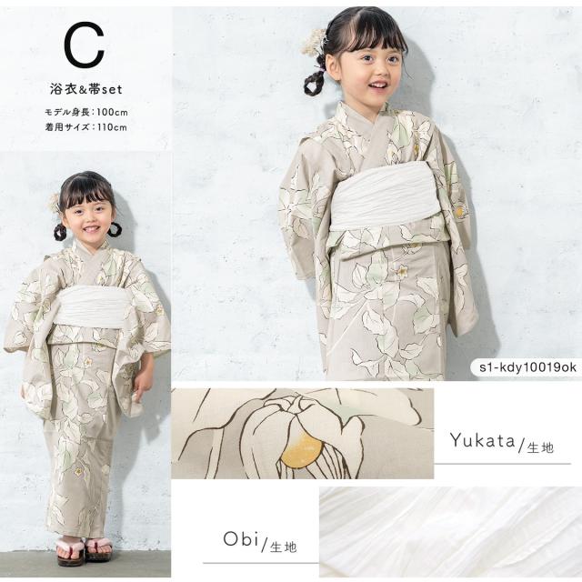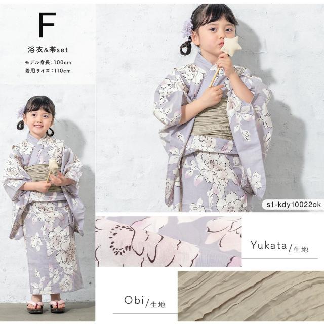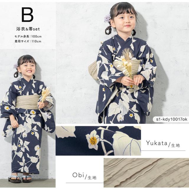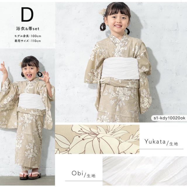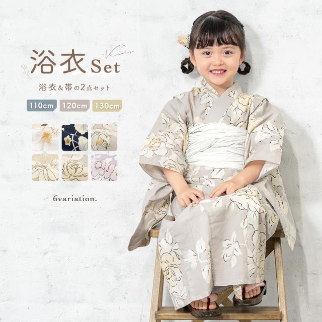 浴衣 子供 女の子 セット キッズ 浴衣セット 兵児帯 2023新作 2点セット モダン ベージュ ネイビー 紺 グレージュ 紫 パープル 牡丹 百合 鬼灯 花柄 綿 帯 夏 110cm 120cm 130cm 送料無料