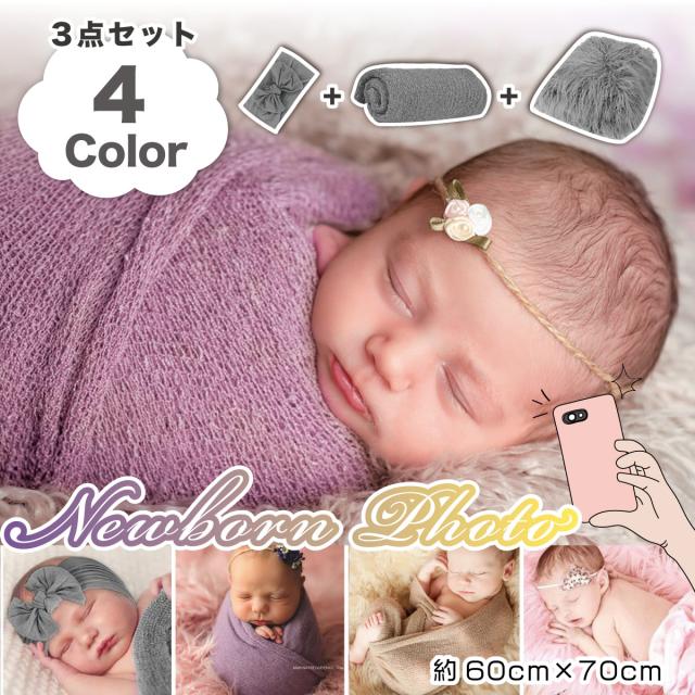 ニューボーンフォト おくるみ 3点セット 男の子 女の子 新生児 ブランケット ファー リボン セット 可愛い 子供服 ベビー服 アクセサリー 小道具 ユニセックス ギフト 出産祝い かわいい 贈り物 プレゼント