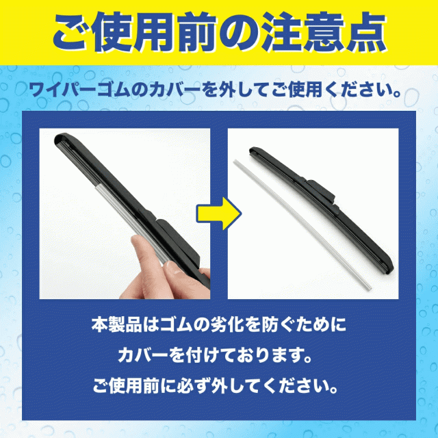 ※ワイパーゴムには撥水剤が練り込まれてるため、ワイパーゴムに触ると手に黒く付着する場合がございます。