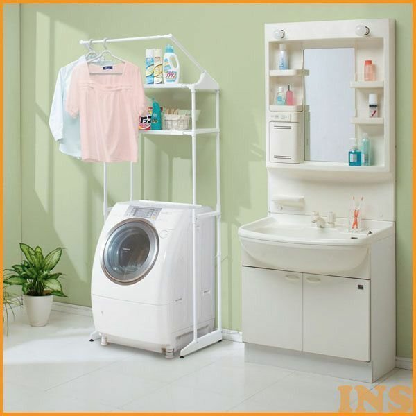 洗濯機のサイズに合わせて、内寸を幅60〜88.5cmまで伸縮できるランドリーラックです。