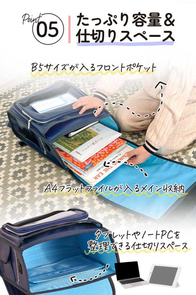 ・タブレットPCや教材を収納、分けられる仕切り付き