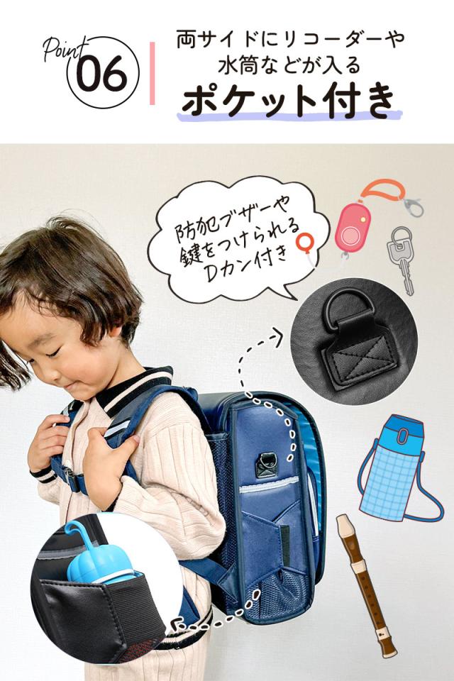 ・リコーダーや折りたたみ傘などが入るサイドポケット