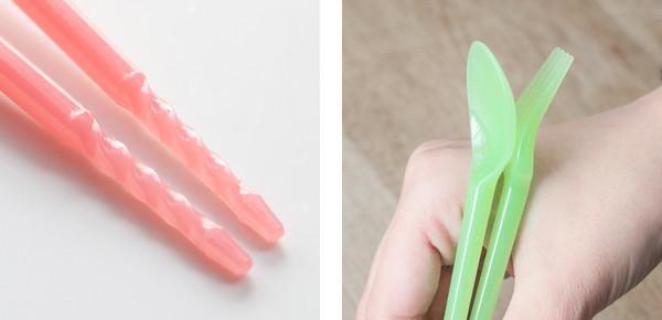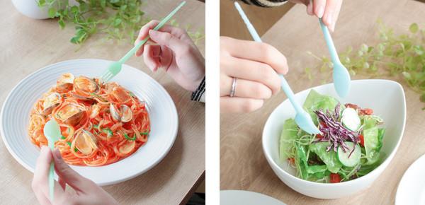 箸、フォーク、スプーンが1つになった、地球に優しいエコな箸です。気分が和やかになるパステルカラーが揃っており、楽しいランチタイムを後押ししてくれます。