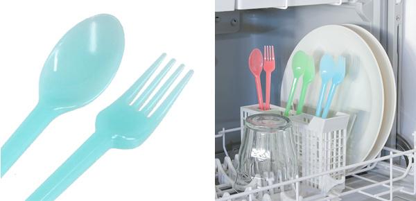 | 大きめで食べやすい フォークは先が4本、スプーンは大きく深いので食べ物がすくいやすいです。 | 食洗機対応 お箸は食洗機に対応しているので、毎日のお手入れも楽ちんです。 |