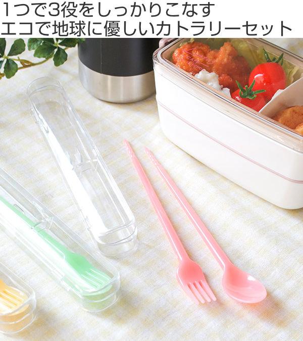 箸 3WAY スプーン フォーク 18cm 箸箱 スパイラル プラスチック 日本製 ( 食洗機対応 お箸 お弁当 ランチ 箸セット 持ち運び 携帯 おはし はし マイ箸 ケース セット すべりにくい ランチグッズ 大人 女性 男性 )