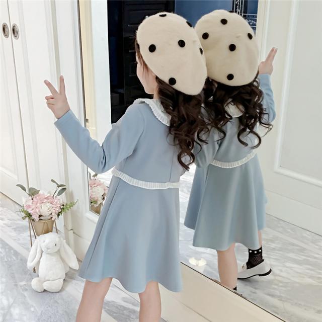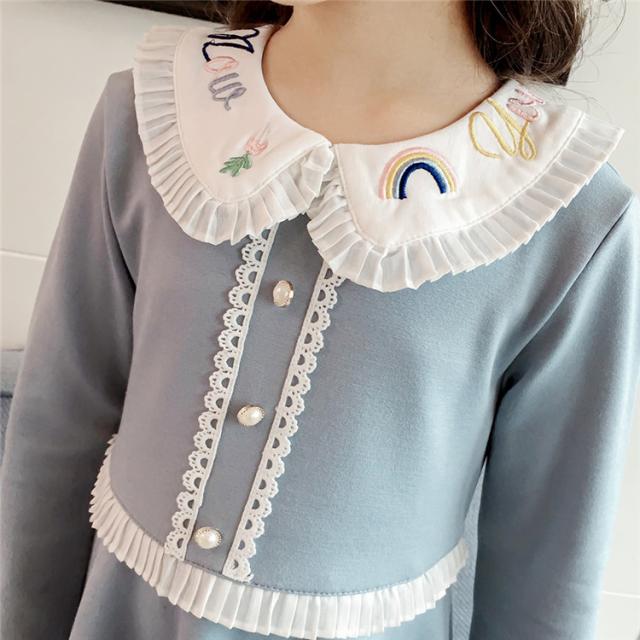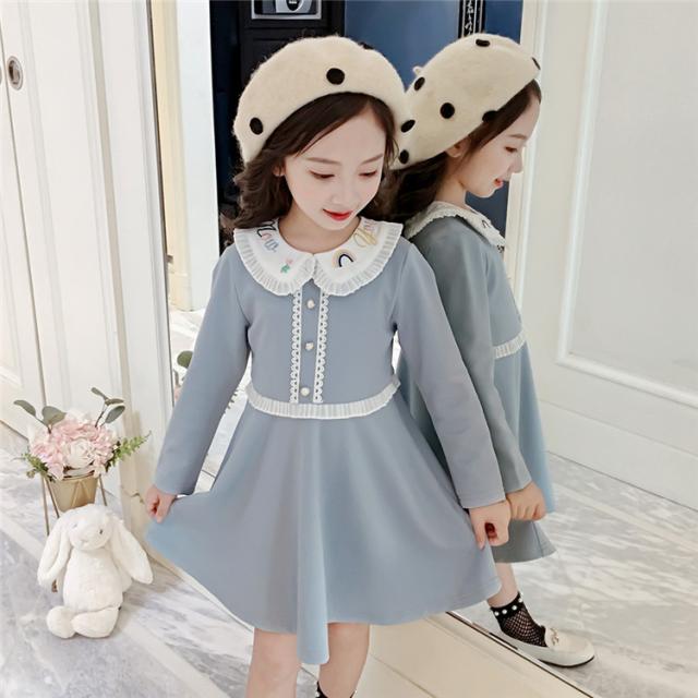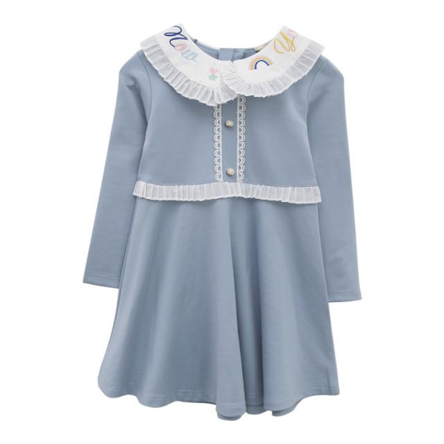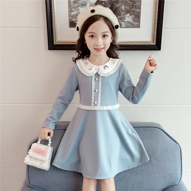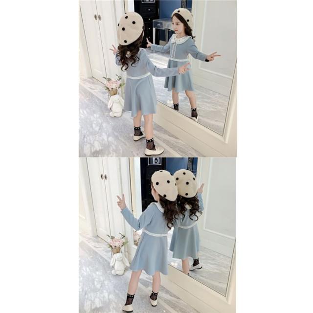 韓国子供服 女の子 子供服 長袖 花 レース襟 ドレス キッズ 上品 ワンピース 春秋着 入学式 発表会 結婚式 110-160cm