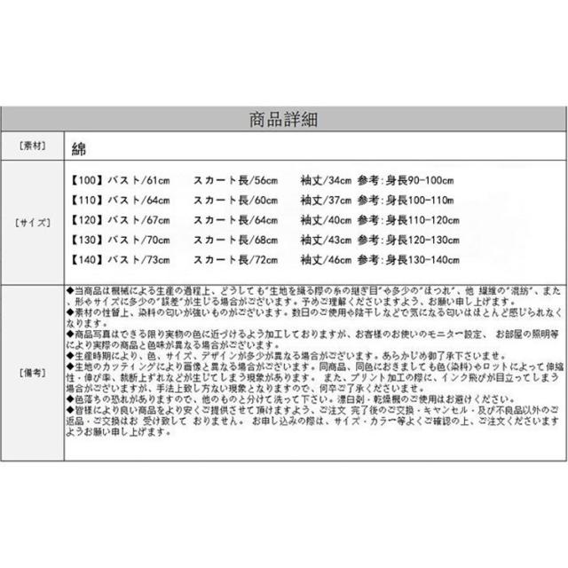 【140】バスト/73cm スカート長/72cm 袖丈/46cm 参考:身長130-140cm