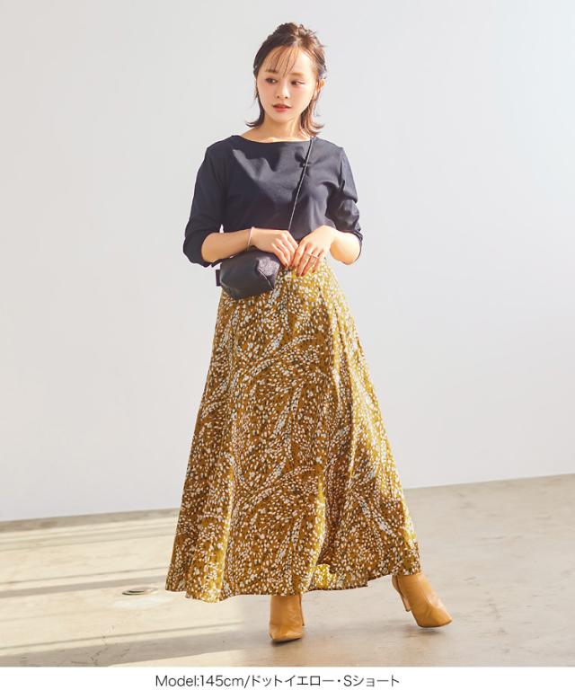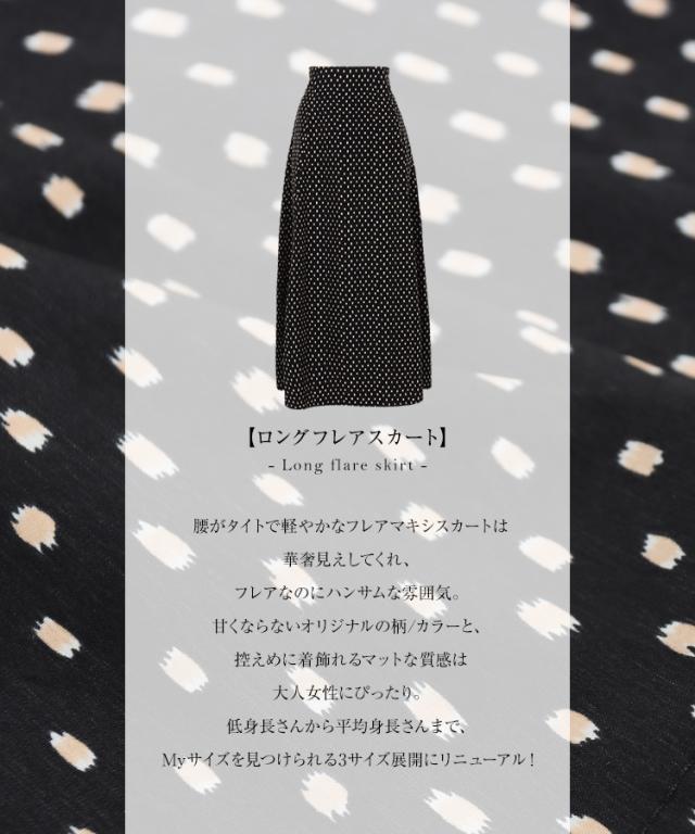 春新作 [ 田中亜希子さんコラボ ] ロングフレアスカート M3190 入荷済 レディース ボトムス スカート フレア マキシ丈 落ち感 春 夏 ロングスカート マキシスカート フレアスカート きれいめ とろみ 大人 無地 ドット 花柄 黒 ベージュ 低身長 小柄 40代 50代