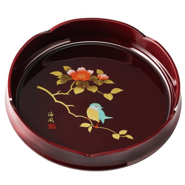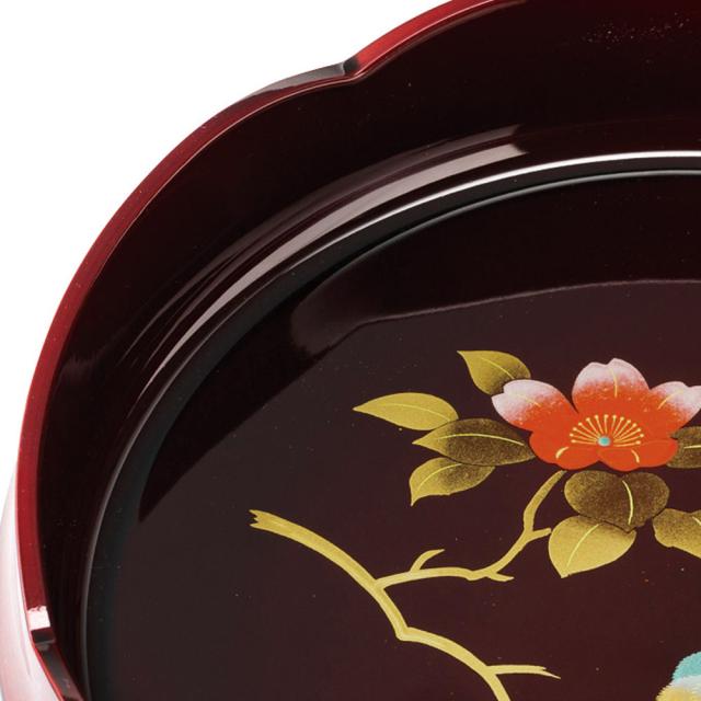 日本製(和歌山県)紀州塗り 8寸 24cm 梅型菓子鉢 溜 さえずり 金蒔絵 盛絵 お菓子入れ 和風 和室 日本製