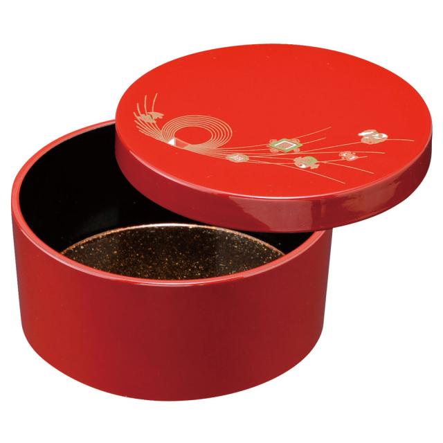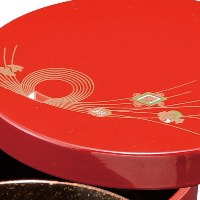 日本製(和歌山県)紀州塗り ボンボニエール 朱 水引宝尽くし 内梨地 菓子器 お菓子入れ 和風 和室 日本製