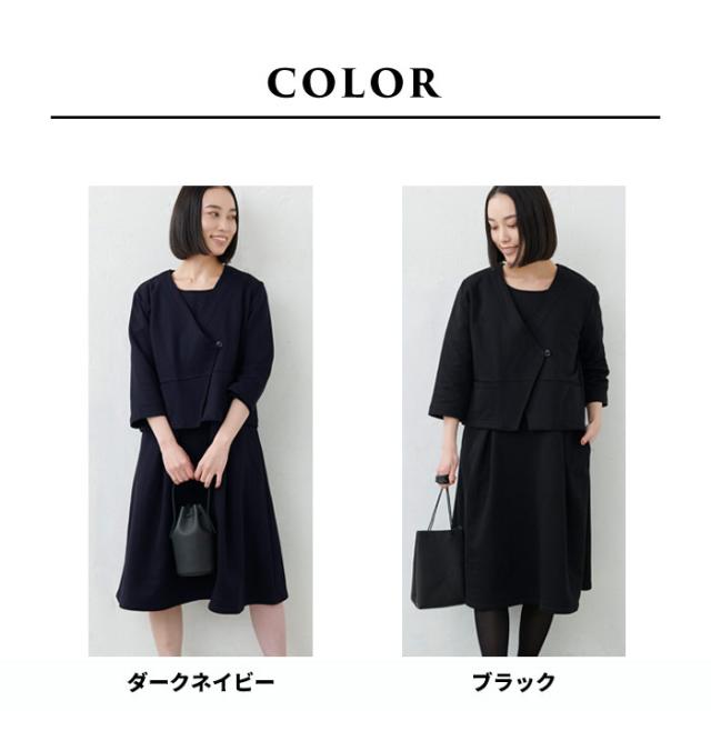 スーピマコットン100% カシュクールジャケット + ワンピース 2点セット 日本製 / 卒業式 セットアップ 40代 入学式 ママスーツ フォーマル ウォッシャブル 大きいサイズ 礼服 冠婚葬祭 発表会 結婚式 法事