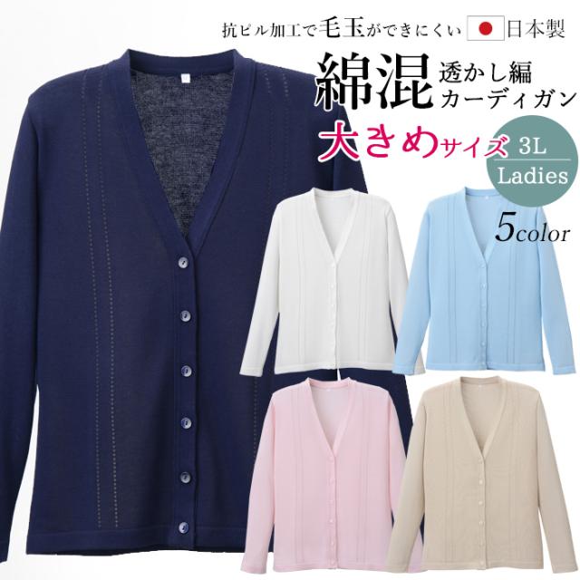 日本製 サマーカーディガン 大きめ 3L レディース カーディガン 長袖 D-PHASE (D-10091_2DS) 【送料無料】オフィス 事務服 ビジネス ナース ユニフォーム 会社 医療 企業 制服 学生 通勤 病院 看護師 介護士 春 夏 秋 毛玉ができにくく柔らかな肌触り agesugi_sfa