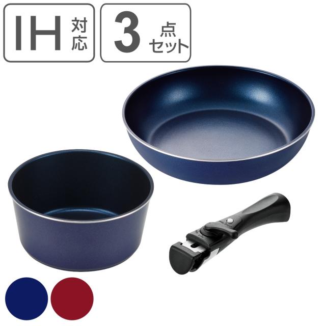 フライパン 3点セット B IH対応 ガス火 スタックプラス ブルーダイヤモンドコート クックウェア3点セットB取っての取れる ( 24cm 鍋16cm ガス火対応 アルミ 取っ手が取れる 浅型フライパン 深型 セット オール熱源対応 フライパン 深型)