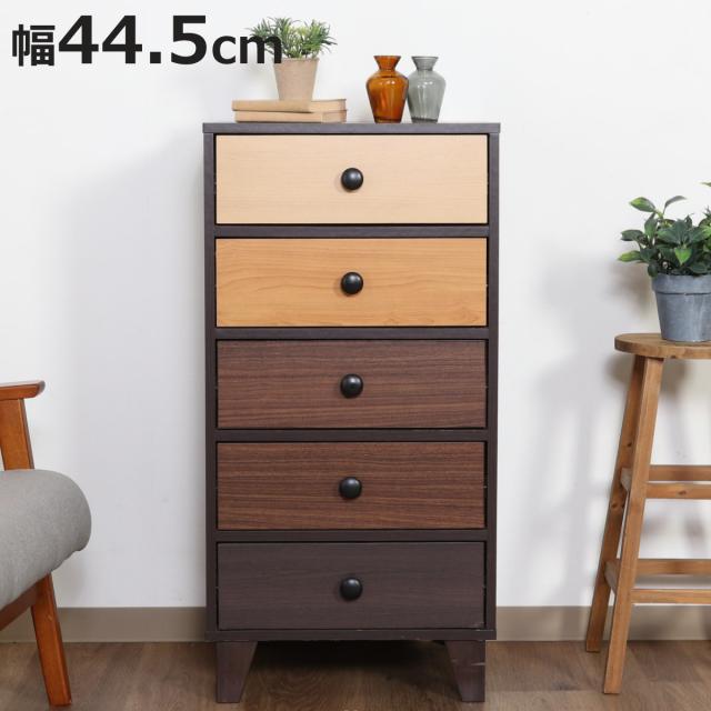 チェスト 幅44.5cm 5段 北欧風 4カラー前板 ( サイドチェスト リビング収納 たんす タンス スリム リビングボード リビングチェスト 収納 サイドボード 木目 シンプル カラフル 北欧 茶色 おしゃれ )