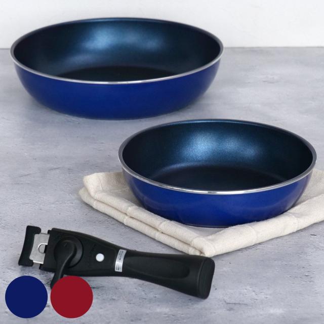 フライパン20cm、フライパン26cm、専用ハンドルの3点セットです。狭いコンロでの複数同時調理も取っ手を外すだけで邪魔にならず、効率よく調理できます。