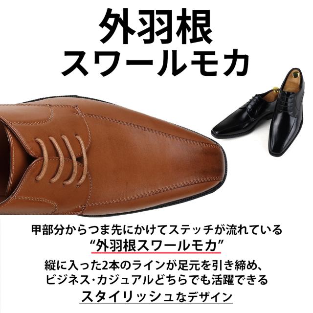 ビジネスシューズ メンズ 革靴 外羽根 スワールモカ 黒 茶 滑りにくい 防滑 靴 幅広 3E No.2672 24.5-27.5cm 28cm 29cm 30cm 大きいサイズ 小さいサイズ キングサイズ シューズ レザー 合成皮革 レースアップ 通勤 AAA+ サンエープラス 冠婚葬祭 267
