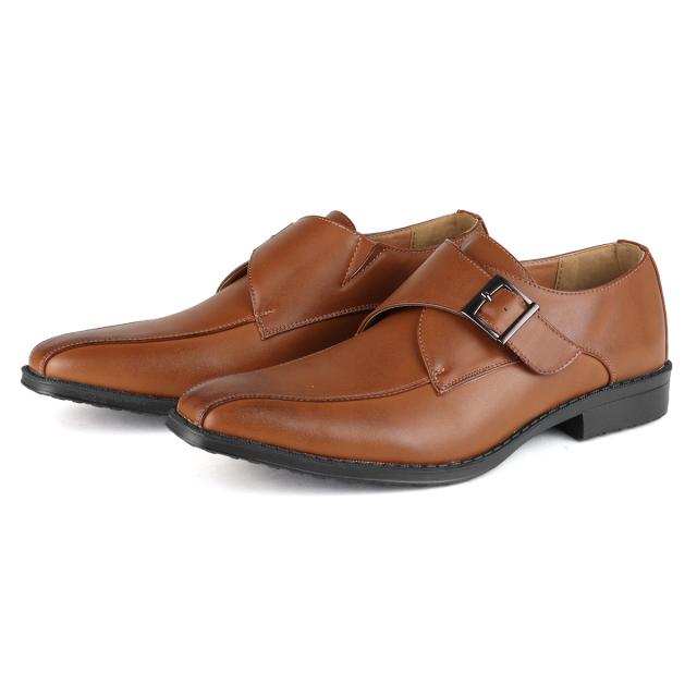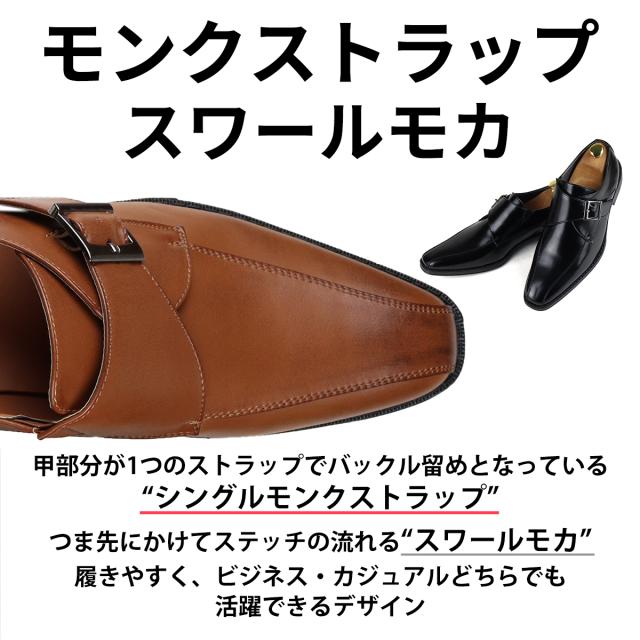 ビジネスシューズ メンズ 革靴 モンクストラップ スワールモカ 黒 茶 防滑 幅広 3E No.2674 24.5-27.5cm 28cm 29cm 30cm 大きいサイズ 小さいサイズ キングサイズ 履きやすい レザー 合成皮革 レースアップ 通勤 AAA+ サンエープラス 仕事靴 コスパ 紐なし 靴 シューズ 267