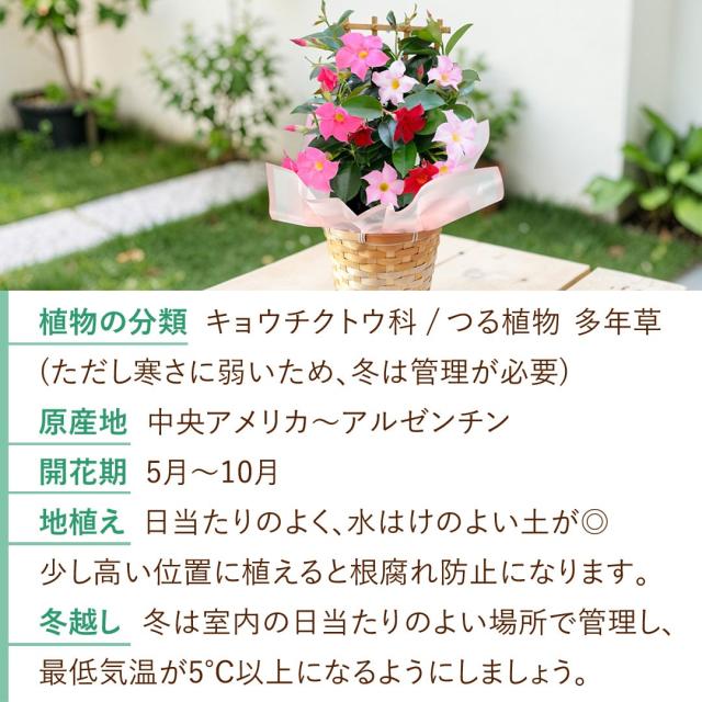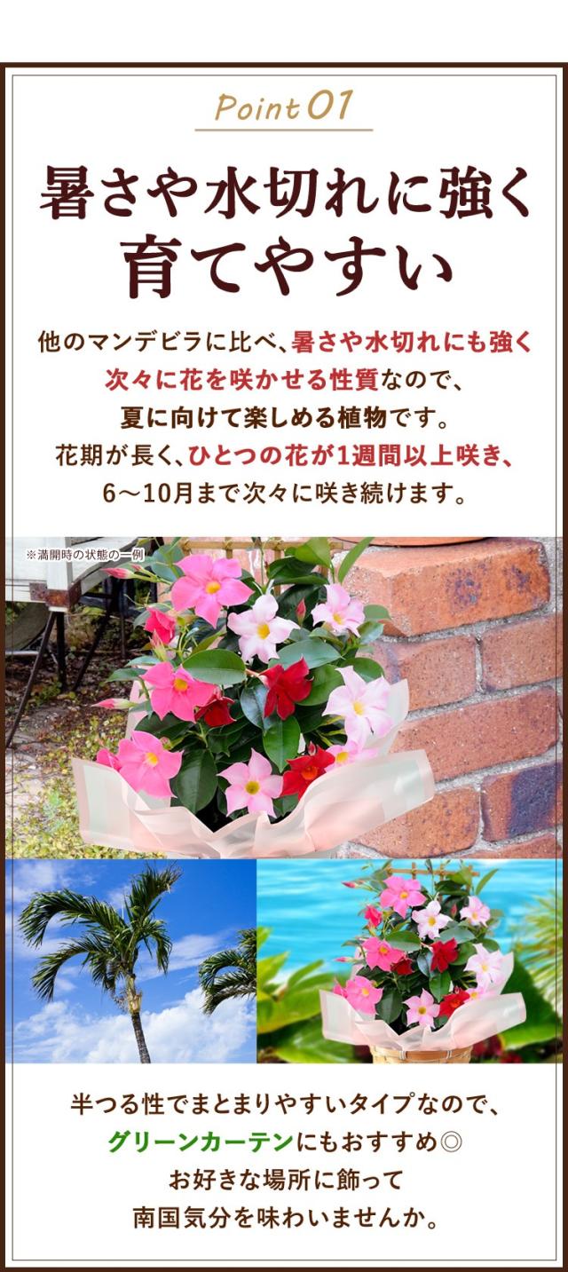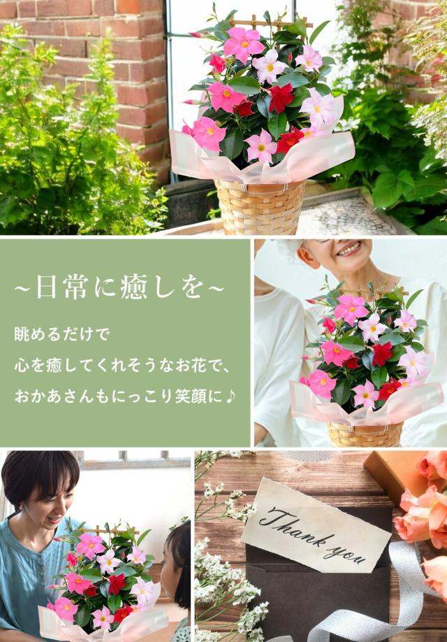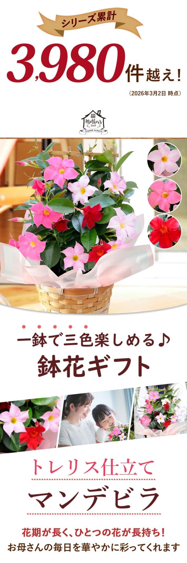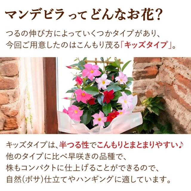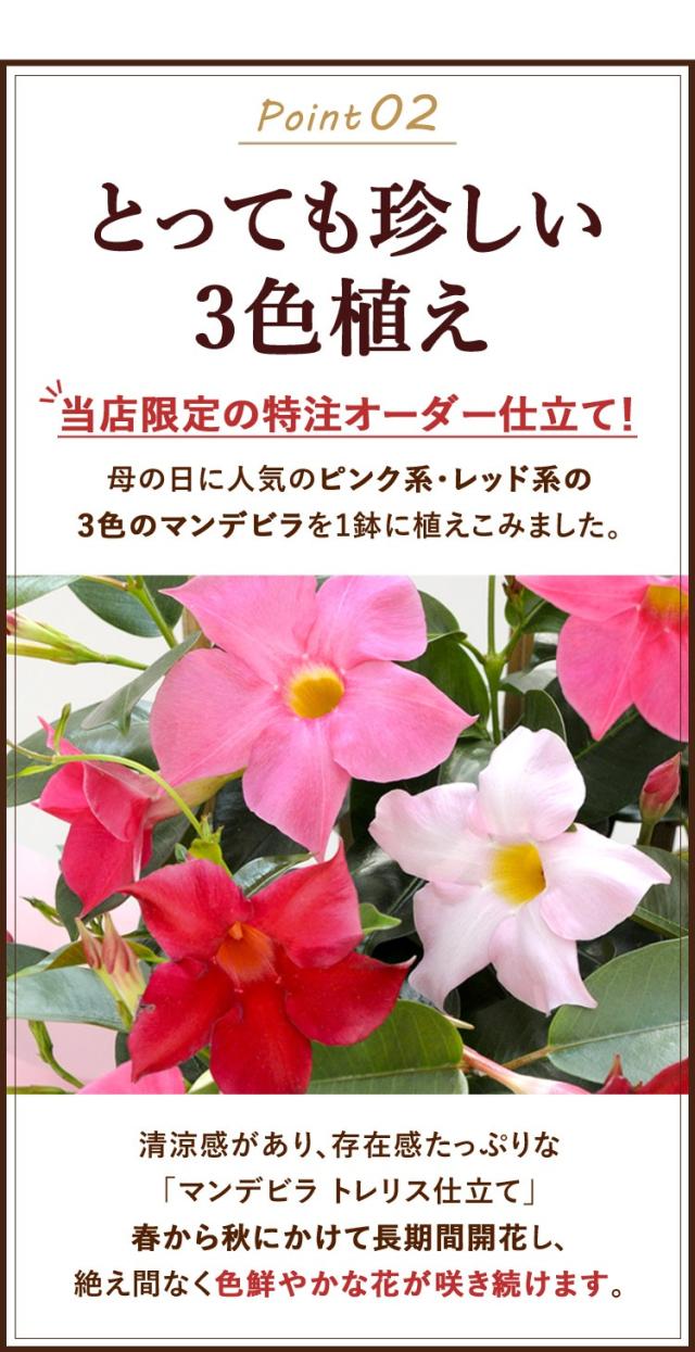 超早割 2026 母の日 花 鉢植え マンデビラ 3色の花が咲く プレゼント トレリス 多年草 花鉢 鉢花 ギフト 珍しい 毎年 咲く 耐暑性 育てやすい 長持ち 長く咲く 鉢 カーネーション以外 母の日ギフト 母の日プレゼント フラワーマーケット花由