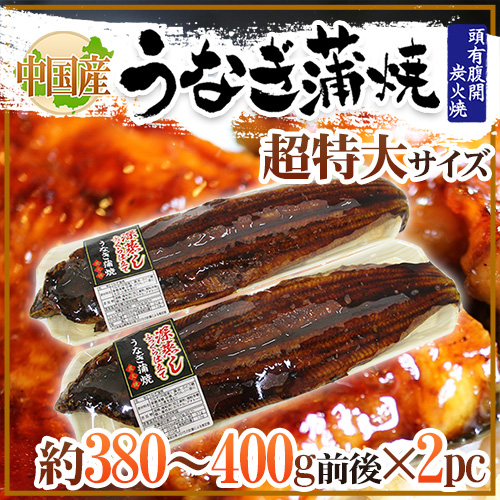 ”うなぎ蒲焼” 約380〜400g前後×2pc 中国産 ウナギ/鰻/有頭腹開/暑さ対策_c 送料無料