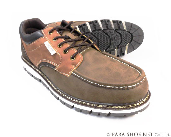 アッパーは雨や汚れに強い合成皮革、ソールは防滑(ノンスリップ)グリップ仕様の合成ラバーソールです。4cm防水設計(地面より4cm×4時間防水)になっていて、雨の日でも安心のカジュアルシューズ。足幅は3E(EEE)と余裕があるので足入れが良く、デザインも幅広いカジュアルシーンでお履きいただけるデザインです。