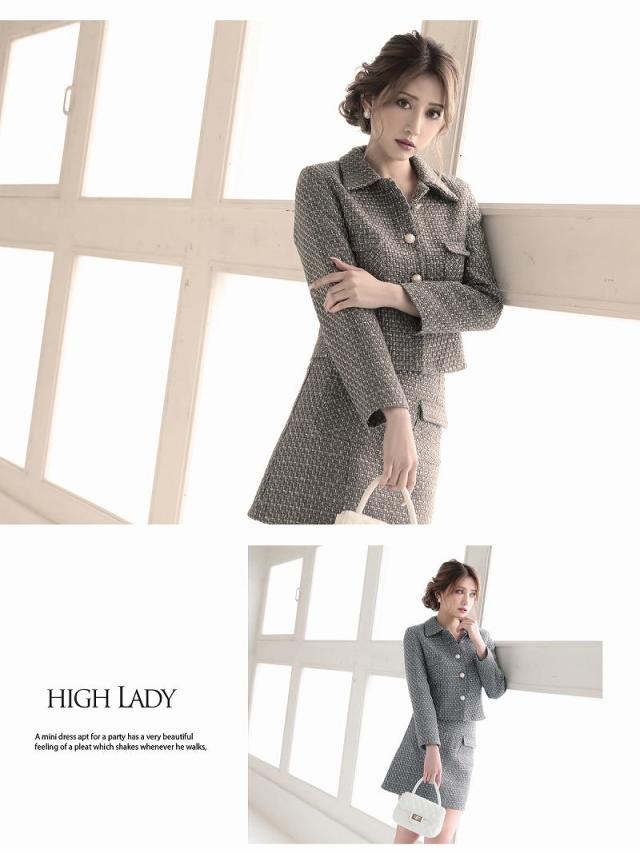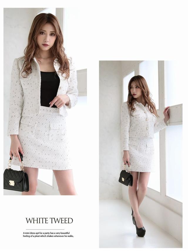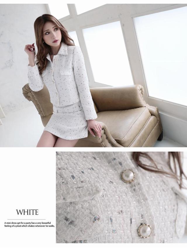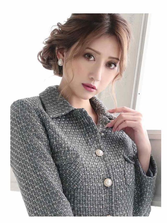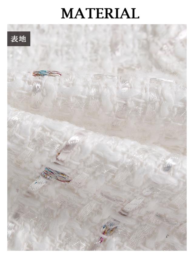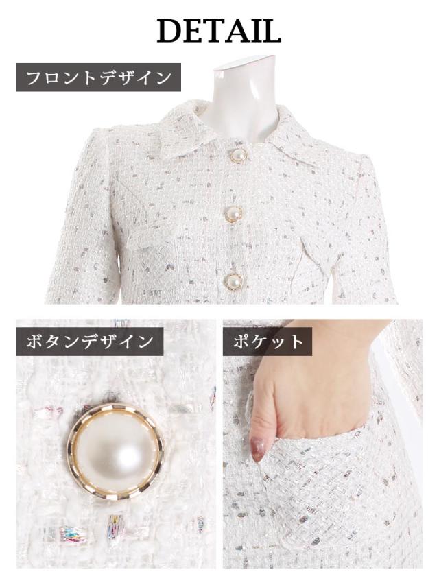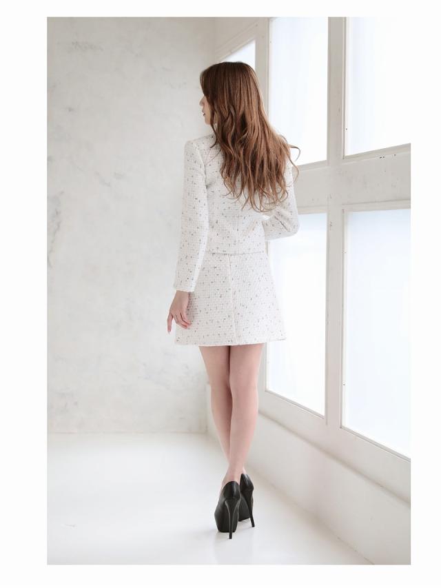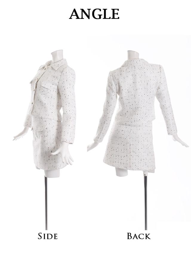 ☆カラーモールが織り込まれたMIXツイードキャバスーツはトレンドをおさえた上品な大人の女性を演出するセットアップスーツ。