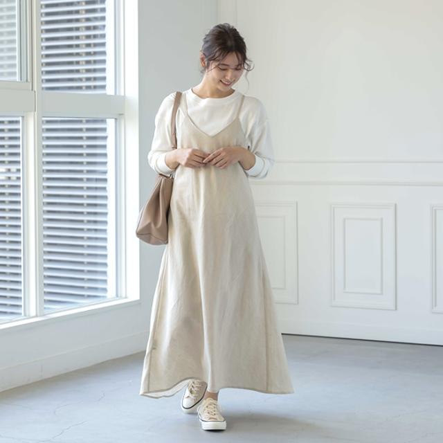 着るだけで即こなれ感!リネンブレンドキャミワンピース。