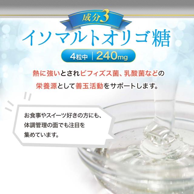 | 麦芽糖(国内製造)、イソマルトオリゴ糖、乳酸菌(デキストリン)(乳成分を含む)/ラクトフェリン濃縮物(乳成分を含む)、ショ糖脂肪酸エステル、シェラック |