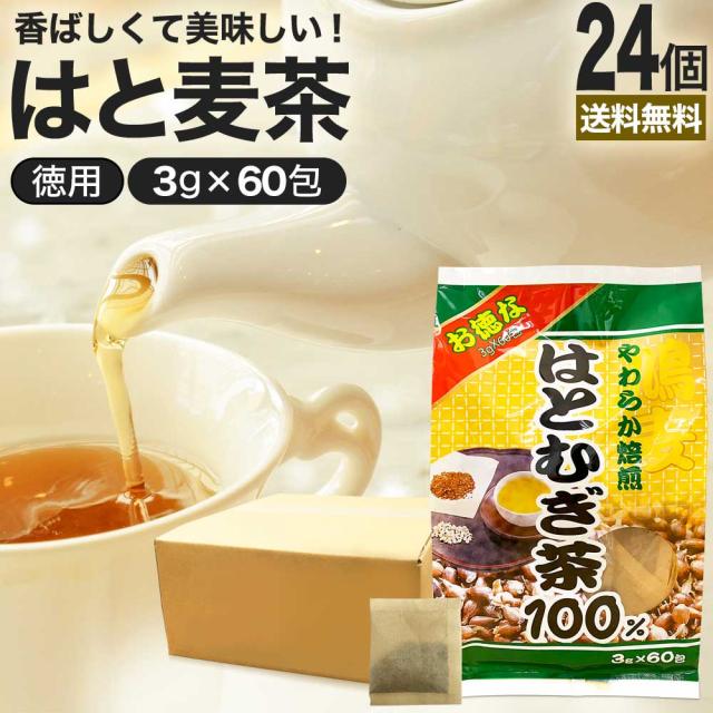 お徳なはとむぎ茶100 3g×60包×24個セット 送料無料 宅配便 | はとむぎ茶 100% ティーパック ハトムギ はとむぎ はと麦 はと麦茶 はとむぎちゃ 煮出し ノンカフェイン カフェインレス デカフェ 茶葉 無添加 ティーバッグ お茶 まとめ買い