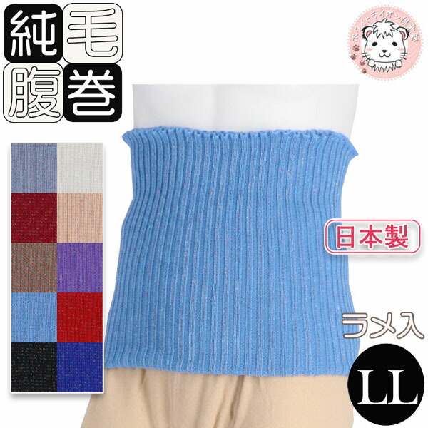 ラメ入り ウール はらまき 純毛 腹巻 毛100% 純毛腹巻き 二重タイプ 防寒 保温 日本製 LLサイズ | 妊活 温活 還暦祝い 冷房対策 あったか HOT 冷え取り 冷え対策