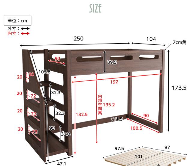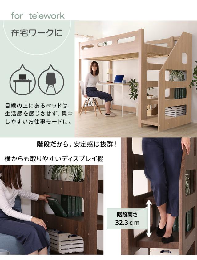 階段付き ロフト ベッド ロフト下に自由な空間を YOUICK ユーイック- 新生活 引越し 家具 北海道送料別途 沖縄 離島別途送料見積もり メーカーより直送します HT-0600