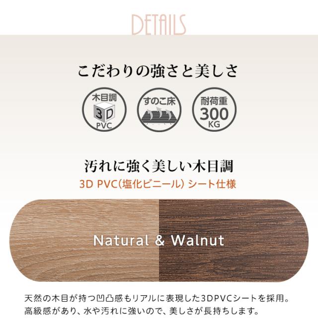 お部屋をすっきり、かわいく演出するナチュラルと、シックにスタイリッシュに演出するウォールナットの2色展開。