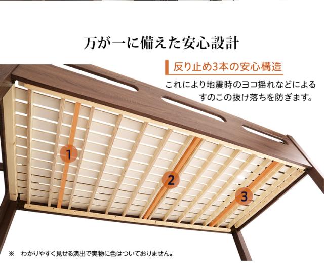 通気性のあるすのこ床を使用しており、すのこ下の反り止めを3本使用した安心構造。
