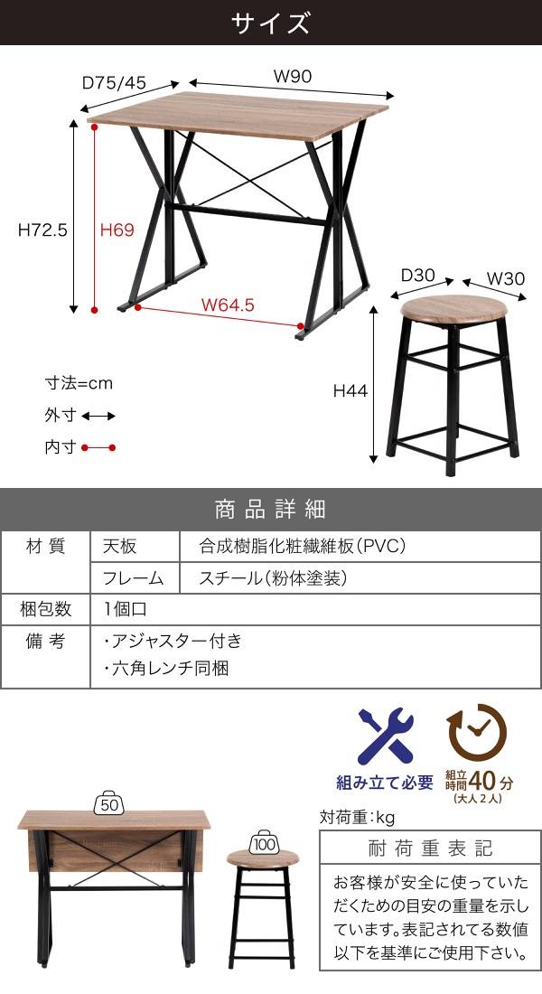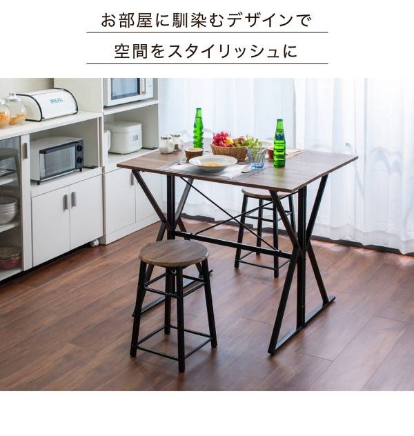 ダイニングセット 折りたたみ ダイニングテーブル チェア 2点 セット 2人用 幅90 バタフライテーブル スツール ダークブラウン ブラック 木製 スチール