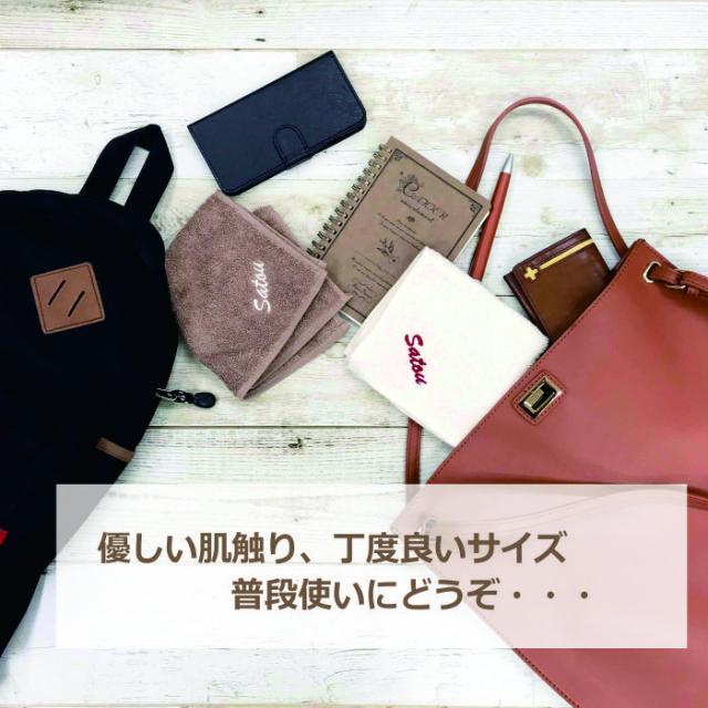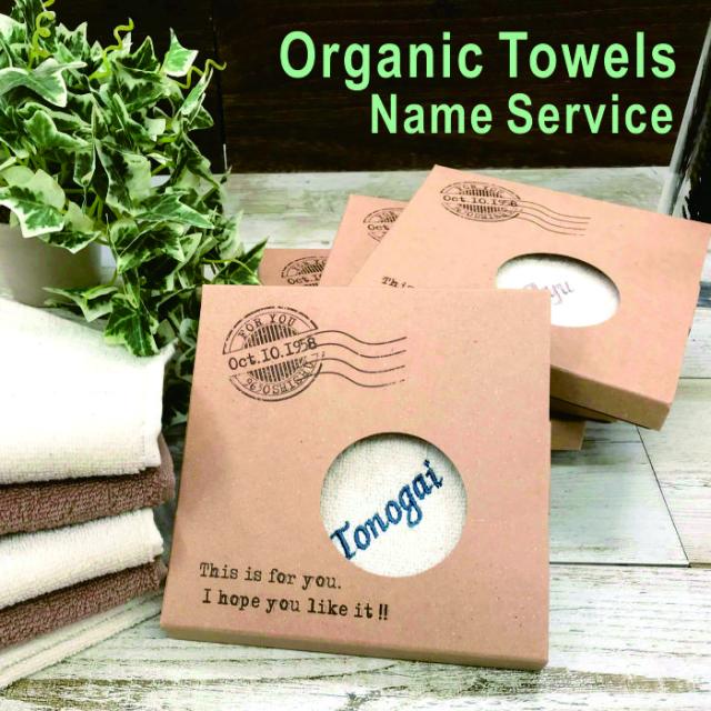 ギフト、内祝い、席札に刺繍名入りのオーガニックハンドタオル
