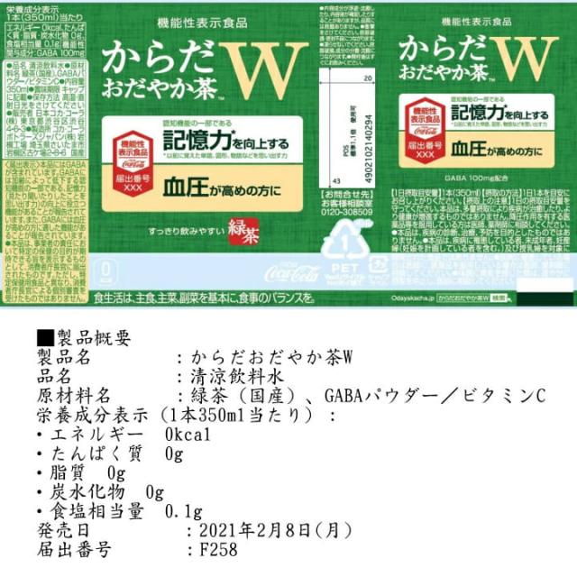 からだおだやか茶W 350mlPET 送料無料 合計 24 本 (24本×1ケース)おだやか茶 血圧 下げる お茶 血圧 下げる 飲み物 記憶力 記憶力の向上を訴求したGABA初の機能性表示食品 機能性表示食品 1ヶ月分 4902