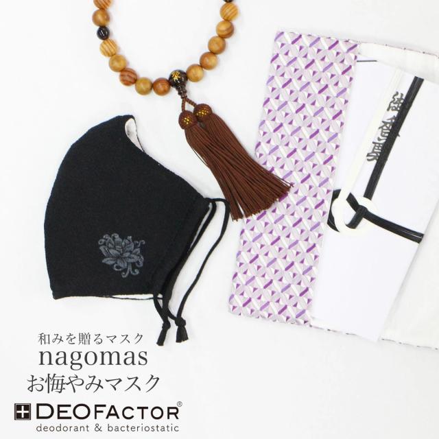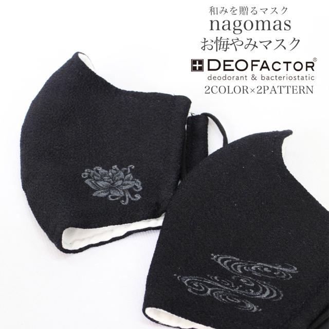 【在庫処分特価】nagomas 京友禅 お悔やみ マスク 抗菌 制菌 消臭 2柄 2色 黒 灰 DEOFACTOR デオファクター ウイルス対策 クール素材 花粉 フリーサイズ 送料無料
