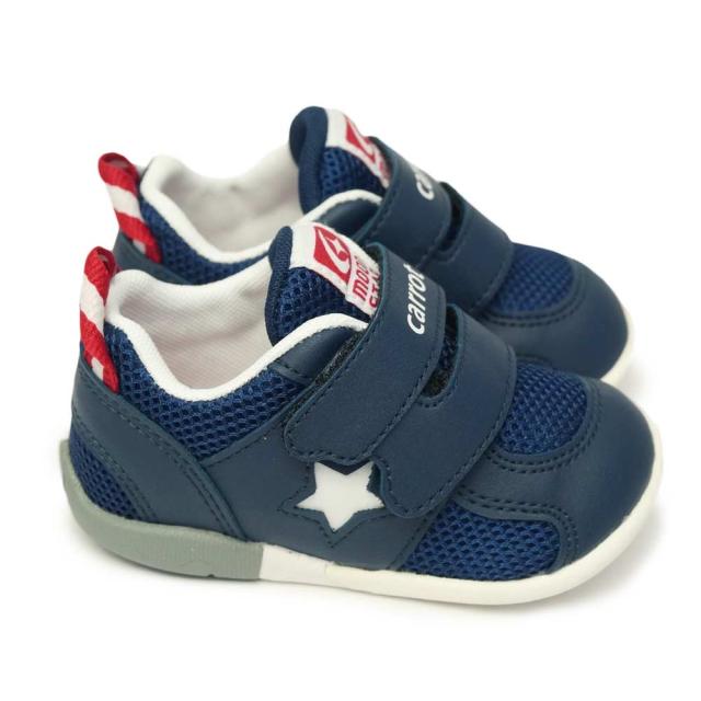 子どもの足の正しい成長をサポートする機能を搭載したムーンスター キャロットのベビーカジュアルシューズです。